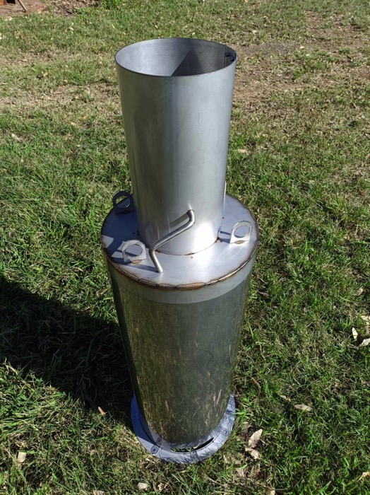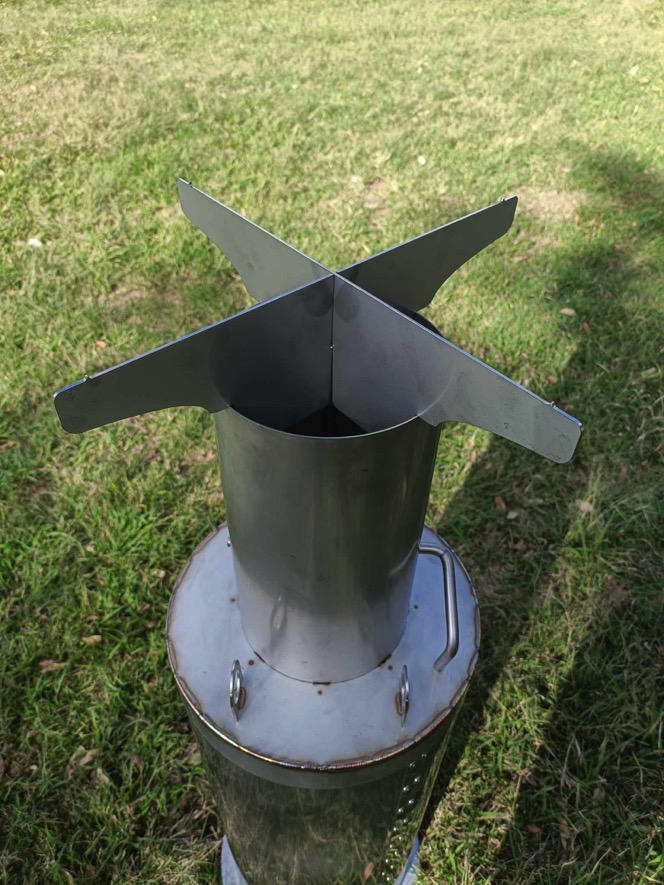 Please use caution. If there was a lot of smoke open the damper up again and the burn will resume once oxygen is introduced back into the system. Let it burn for another 10 minutes and try again. Another caution when opening up the damper after checking there will be a large fireball/flame shoot out the top, best to keep your head clear or if you’re wearing a synthetic wig this might not be the best combination. This is probably a good time to mention that if you’re using this under a tree that would be a bad idea or near anything loose and or flammable that would also be about idea or near your stockpile of petrol / gasoline, that would also be a very bad idea. There are so many very bad ideas that I would run out of time and could consume a lot of paper in telling you about them.