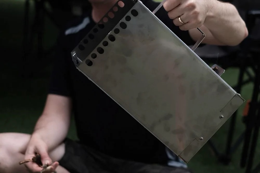 The younger brother to the Wokkett, the Field stove is slightly lighter, made of 1.5mm 304 stainless steel for the burn chamber, and 1.2mm stainless steel for the body, with an enclosed base to capture more heat that would otherwise be wasted, this stove has a hot clean burn. It can take large and small pots with ease.